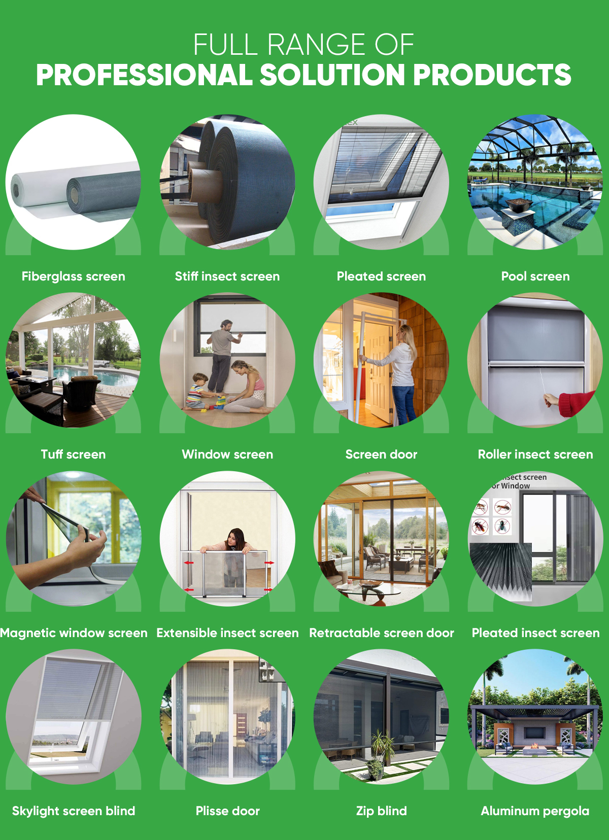 Productos principales:Mosquitera, puerta mosquitera, ventana mosquitera, persiana con cremallera, pérgola